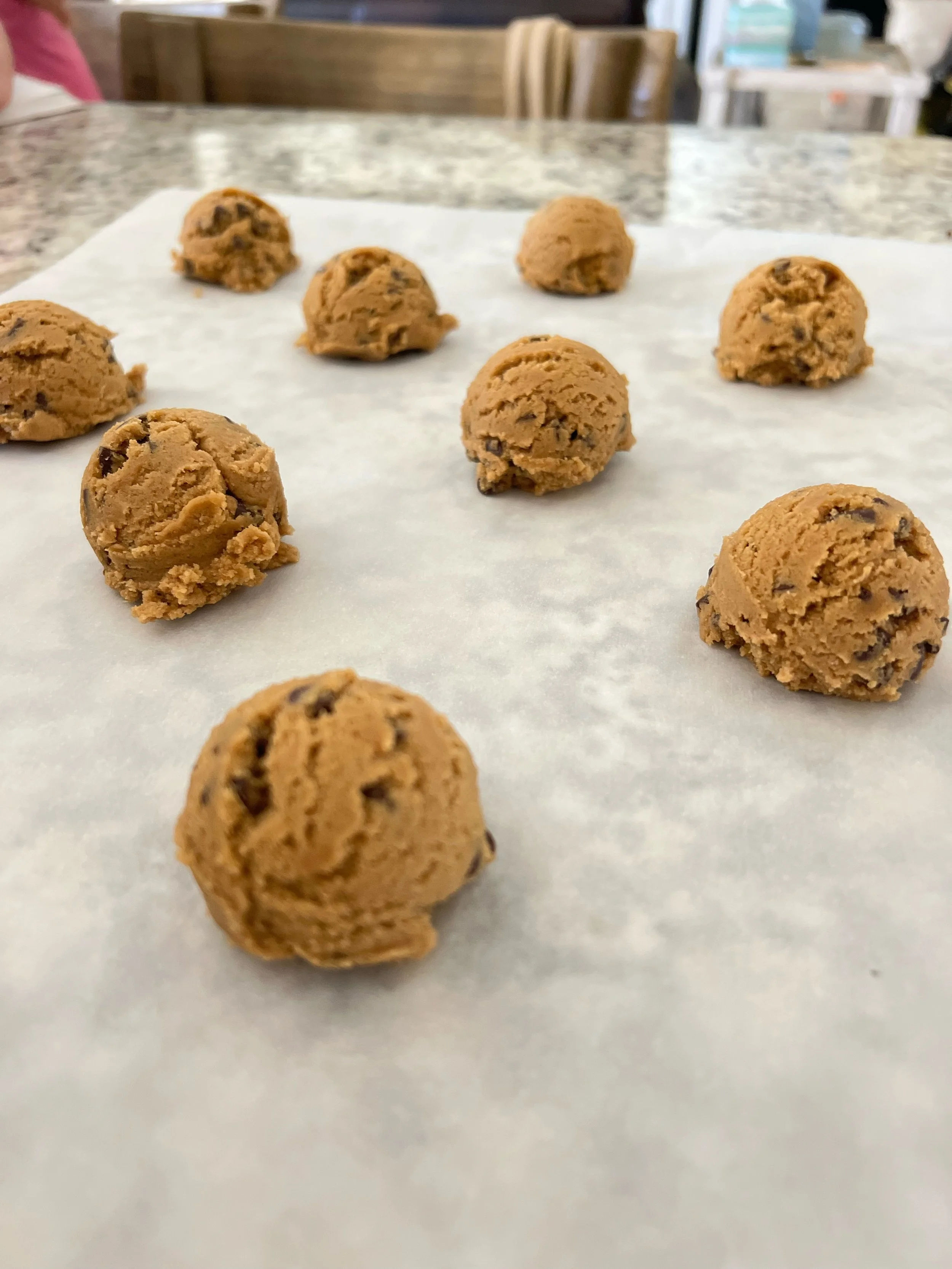 8. Scoop out 2 tablespoons of dough on a parchment-lined baking sheet and bake for 10 minutes at 350.